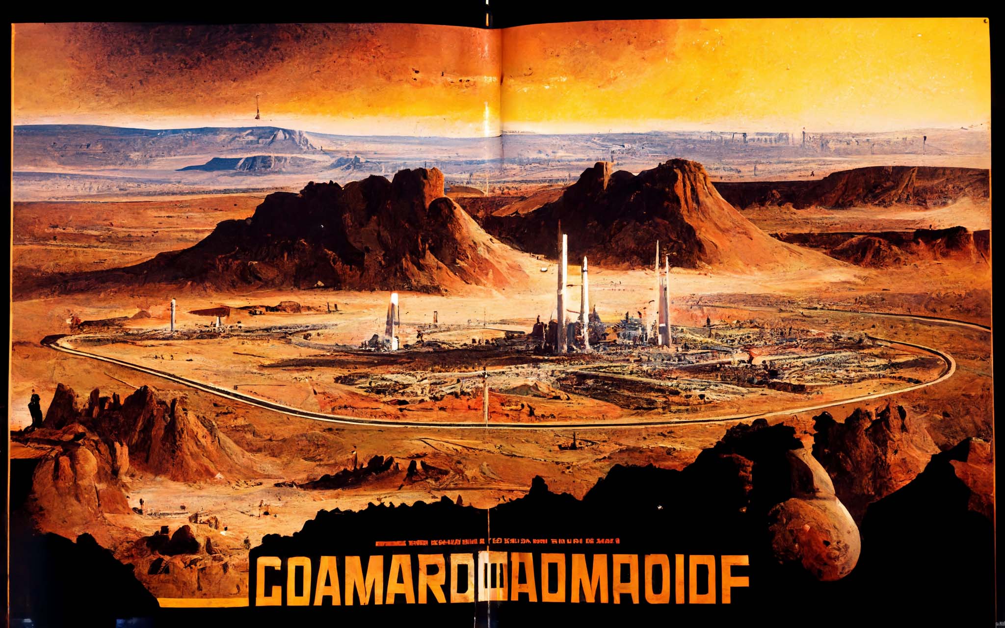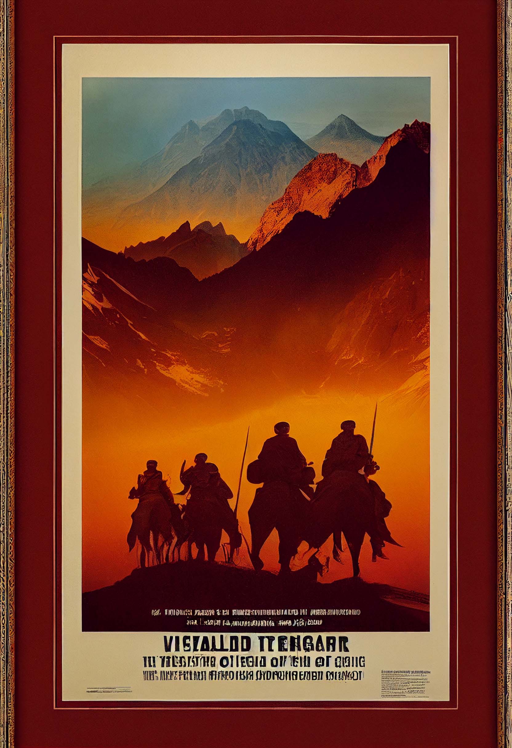 Movie poster, framed cover, [Mongol Cyberpunk Palace, Yurt, Casino, Mars Dome], Mongols in jury – rigged power armor carrying Russian advanced combat railguns with laser sights, Ögödei Khagan a Mongol General in jury – rigged elablorate cyberpunk powered armor riding a cybernetic Mongol war pony, titled “THE KANGAR UNION “, visibly says “Join the Horde! “, visibly says, “Copyright( C) 2035 Talhir Productions, all rights reserved”, on Mars, on the side of Mars cliffs, Mars box canyon, black shadows, ice mining, ice cave, ice, desert, distant volcano, plains, road, atvs, HEMTT, midnight, two small potato – shaped moons overhead, stars, milky way, blue neon sign says “Kangar Canyon Casino and Recreation Dome”, Mongols in jury – rigged cyberpunk power armor, cybernetic Mongol war ponies, two small potato – shaped moons, in the style of Potala Palace, in the style of Drepung Monastery, in the style of Tashilhunpo Monastery, in the style of Jakyung Monastery, in the style of Flash Gordon, in the style of Buck Rogers, in the style of John Carter on Mars, in the style of Alita, in the style of Masamune Shirow, in the style of steampunk, in the style of dieselpunk, in the style of cyberpunk, in the style of solarpunk, in the style of Genghis Khan, in the style of Mad Max Fury Road, in the style of John Carter of Mars, in the style of Wild Wild West, in the style of retrofuturism, in the style of Raygun Gothic, rule of thirds, proportion, volumetric lighting, cinematic lighting, Fibonacci series, Archemedian spiral, extremely complex, very fine black lines, mechanical drawing, technical drawing, drafting, orthographic, isometric, exploded view, call – outs, scale, metric, unreal engine 5, octane render, ray – traced, rendered, rendering, extremely detailed, black shadows, dust, starlight, precise, 3D, perspective, vanishing point, depth of field –h 6400 –w 9600 –testp –s 5000 –creative –upbeta
